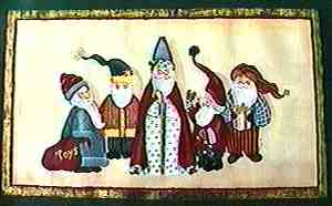 ![]() | This is a replication of the famous picture of different types of santa. I painted them on a canvas, and put them out each year in front of the tree. |