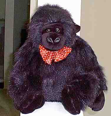 | Edger is a stuffed gorilla who was added to the collection about ten years ago. He is a cute and cuddley gorilla, with an ever watchfull eye. Too bad he can only look to his right. | ![]() |