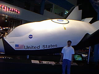 ![]() | Frank by a mockup of the next planned shuttle design. |