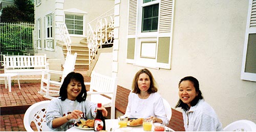 Heather, Vivian and Angela, enjoy breakfast at the Beach condo. |