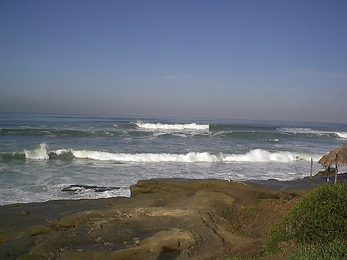 | While we were there the surf became very heavy from some storm off in the Pacific, with large waves, very close together, notice 3 waves one after the other. | ![]() |