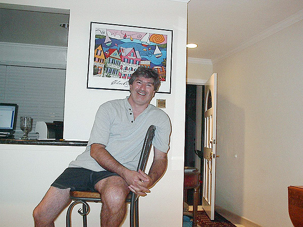 Emil proud of a recent artistic procurement he made. Everyone loved the piece, in fact all of his son's friends admired it so much they took pictures with it. |