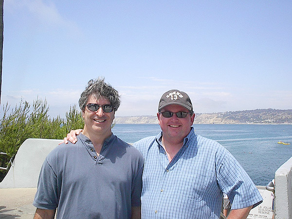 Frank and Chris at the Cove in La jolla. The wind is blowing Frank's Hair around, not a pretty picture. |