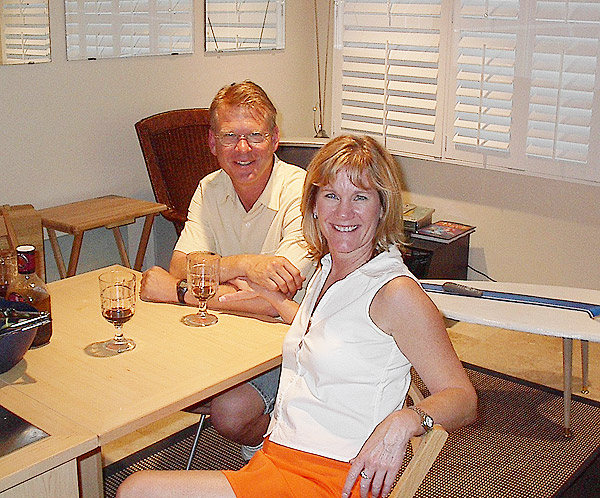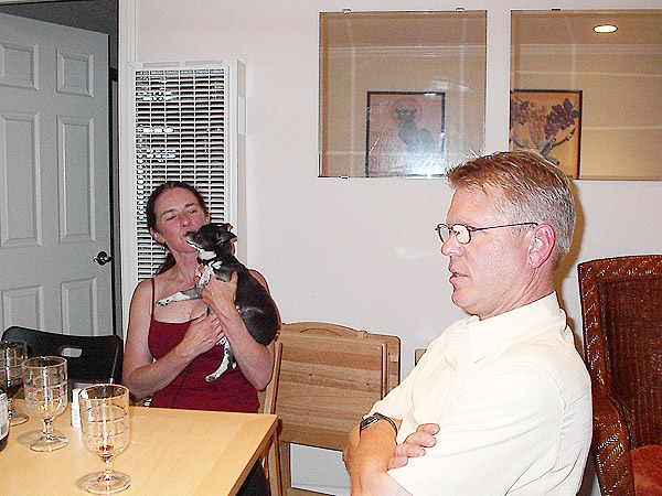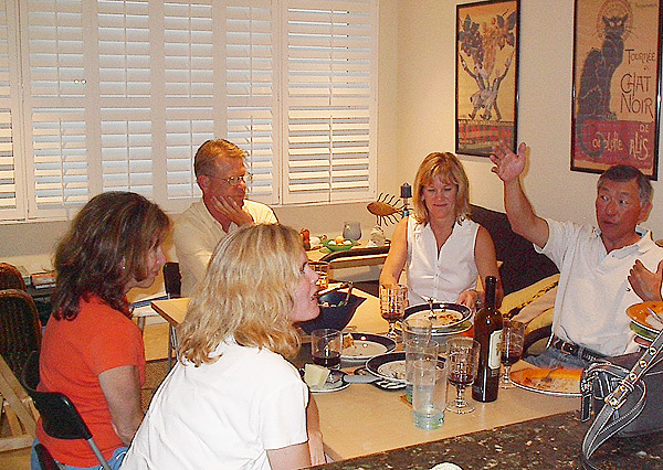 Back at La Jolla, Frank & Vivian have a dinner party, which quickly grew in number. Luckly there was enough Pasta and Wine (a good portion of which was supplied by Emil) to go around. Here a shot of some of the guests Denise, Bruce, Emil, and the back of Lani and Vivian's heads. |