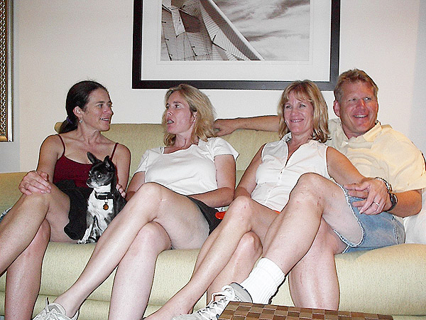 Once the food ran out, the party spilled over into Emil's place. Here on the couch is Sue, Vivian, Denise and Kevin. |