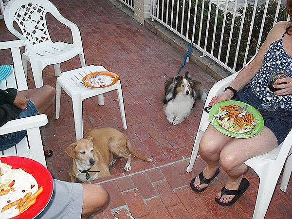| Another shot of the dinner festivities, the dogs Blazer and Langston join the party. | ![]() |