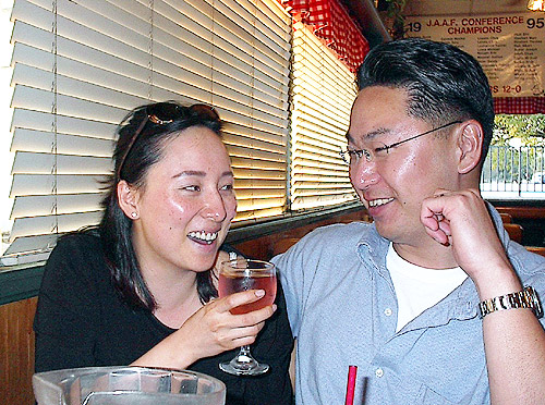 Mean while back in San Diego, Vivian and Denise before we go in for a thai dinner. |