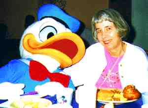 | | Here is my mom having breakfast with Donald Duck, conversing about world affairs, or about the latest sales at the supermarket, I can remember which. |