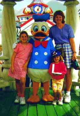 | | Here is my sister and her daughters posing with Donald Duck. |
