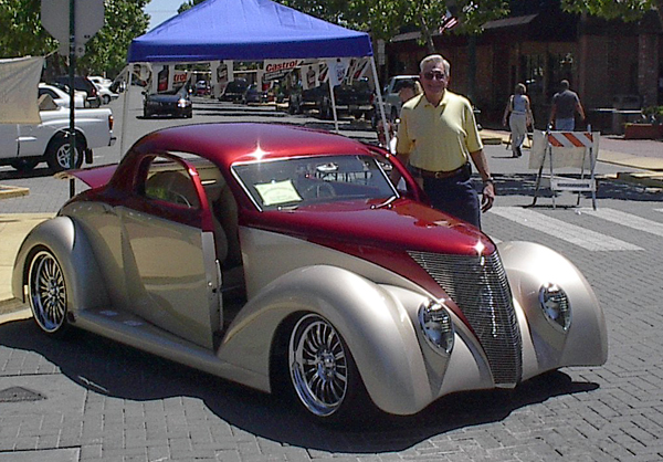 Some doubted that Carl would ever leave Redlands, but here is picture proof that Carl is in Lodi next to a vingtage car. |