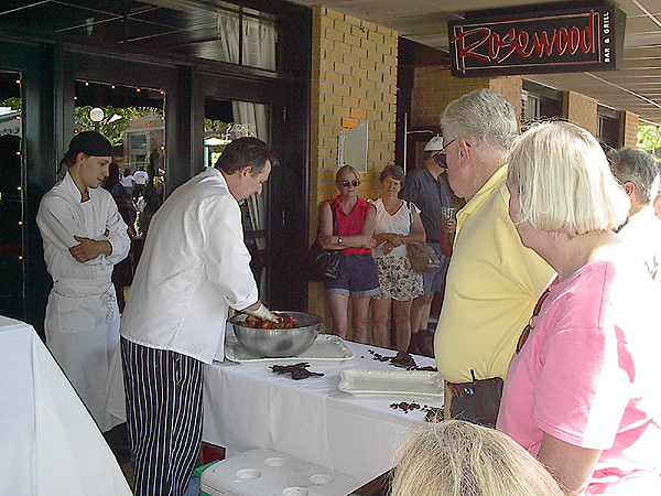 | Carl and Sue and the top of Vivian's head watch a Sausage making demonstration. The best part was tasting the sausage and wine provide at the end of the demonstration | ![]() |