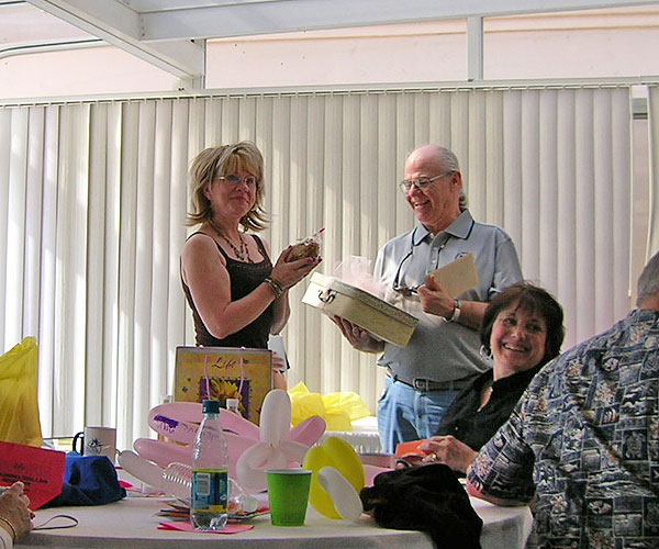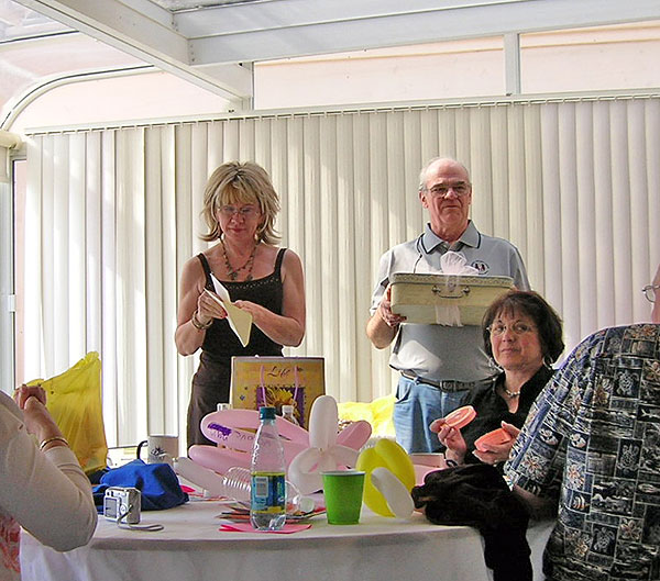 Di's favorite gift were some home baked cookies. Another favorite was the tatoo/body piearcing certificate she is going to use on Roger. |