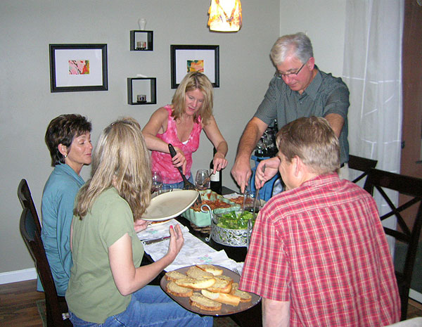 Vivian, Ursula, Denise, Emil. Denise kept insisting the lasagna was wet, Emil is trying to figure out if it is wet or just moist. |