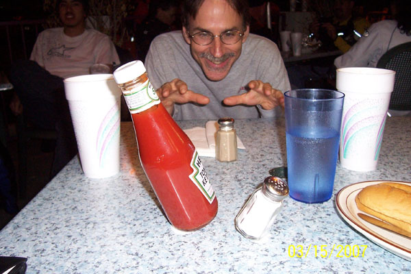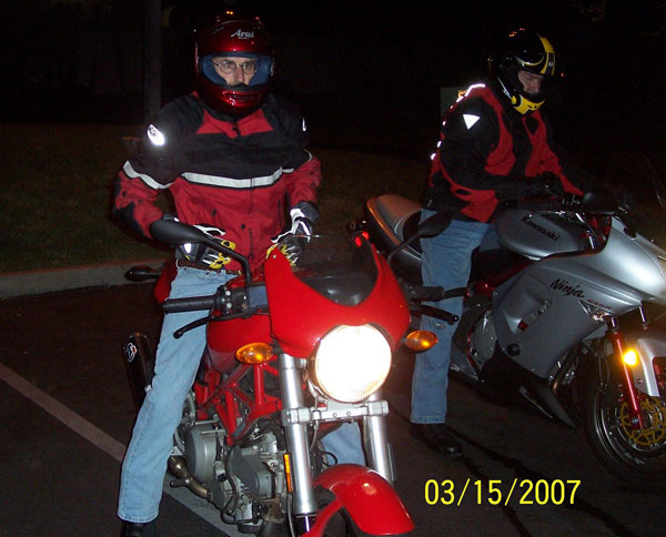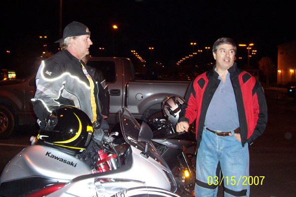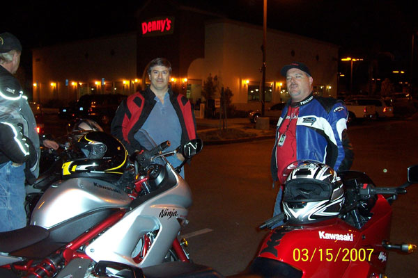 Jamie Hacking came in second in Daytona for Kawasaki in the super sport division rase the week before, then we happen to meet him in the lot at Dennys. |