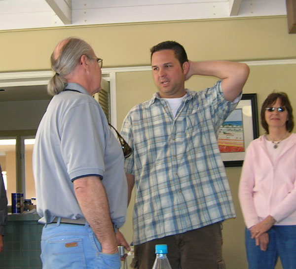 Once in side we relaxed first on the lower level listening to a band and having some refreshments, before going upstairs to have dinner. Seated are Loyd, Pamela, and Lani. |