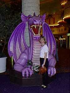 | Then it was off to Luxor & Excalibur. Here is Vivian by a dragon, a kinght in armour and Vivian at some slot machines. | ![]() | |